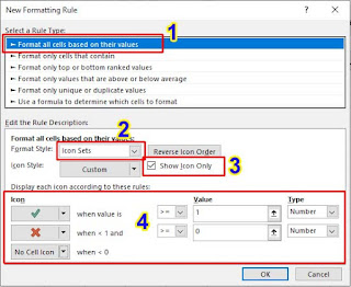 - Pada Format Style pilih “Icon Sets”, lalu beri tanda centang pada Icon Only